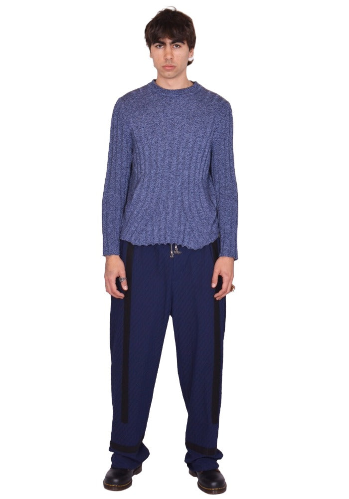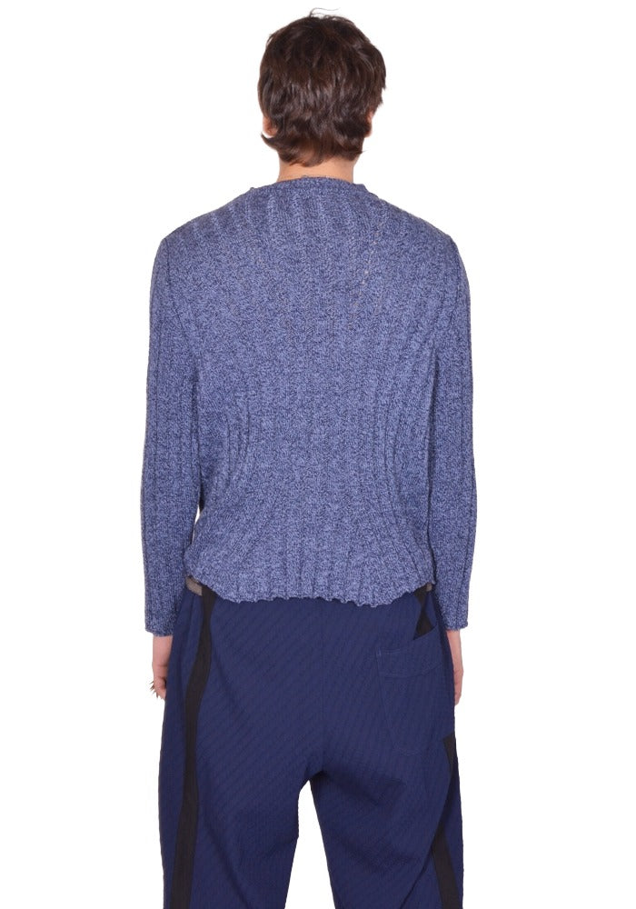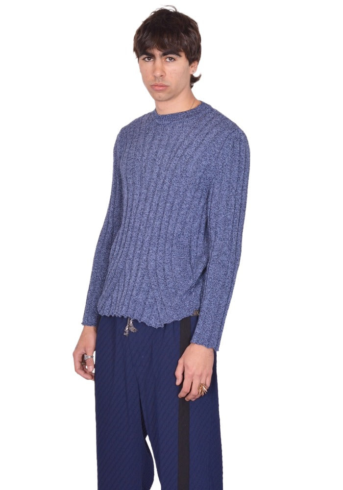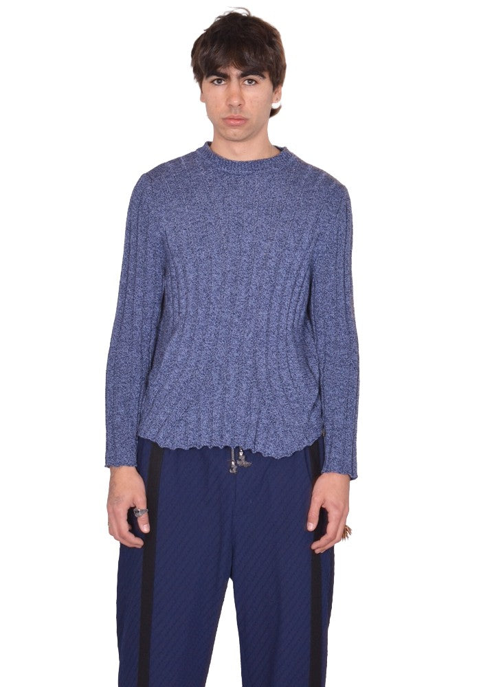 Mens fishermans knit sweater in blue melange cotton blend features a crew neck, long sleeves and flared hem from KIKO KOSTADINOV 2026SS Men's collection.