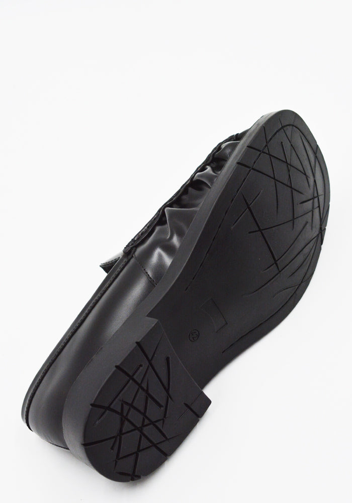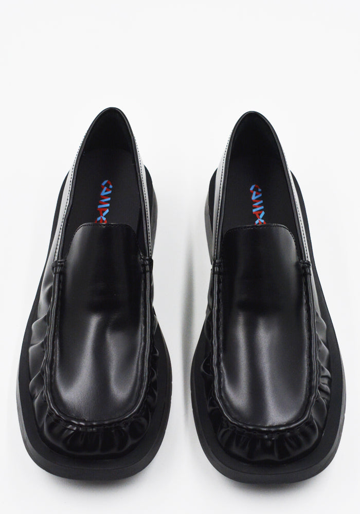 Leather loafers in black calfskin upper features round toe, ruched detailing, with leather linings, recycled OrthoLite® footbeds, and rubber outsoles from Camperlab FW25 collection.