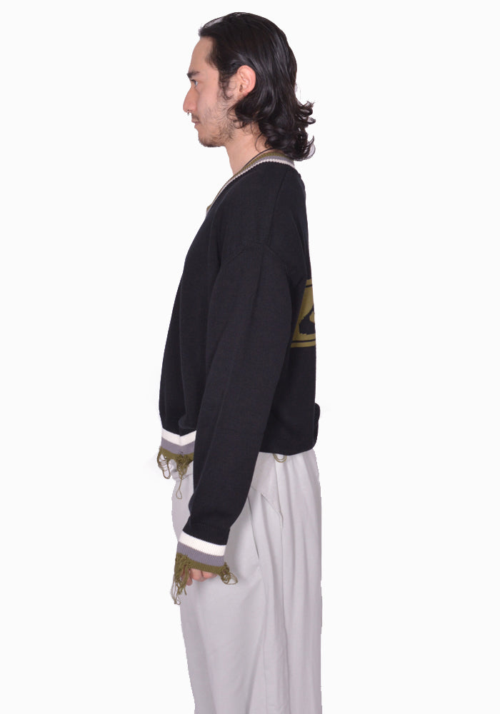 Unisex, Knit sweater in black featuring a ribbed V-neck, ling sleeves and large logo at back from Ottolinger 2025SS collection.