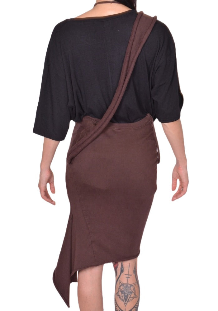 Asymmetric skirt in brown organic cotton jersey features one shoulder strap and asymmetric hem line from Ottolinger 2025FW collection.