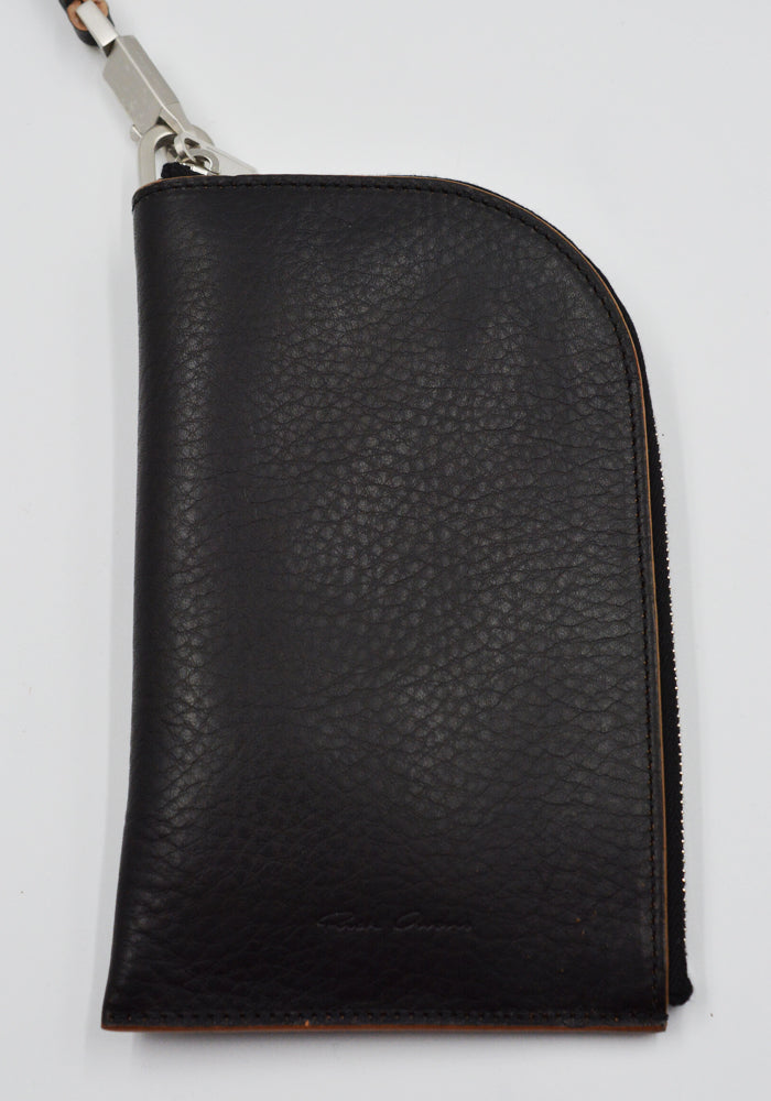 RICK OWENS MEN LEATHER NECKWALLET BLACK FW25 | DOSHABURI Online Shop