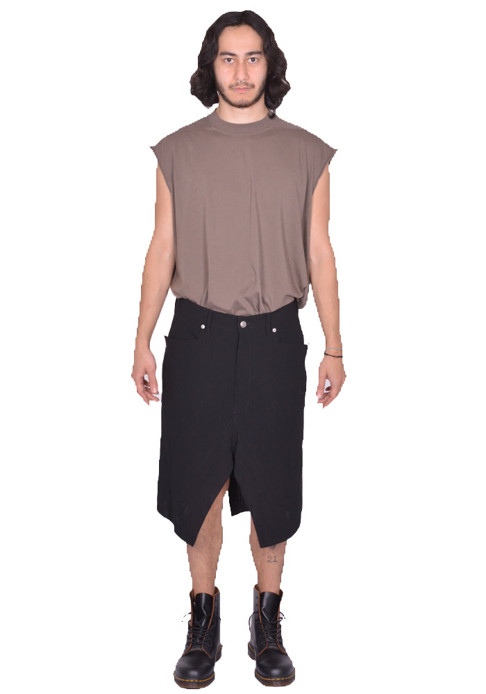 RICK OWENS MEN SLIVERED SKIRT BLACK SS25 | DOSHABURI Online Shop