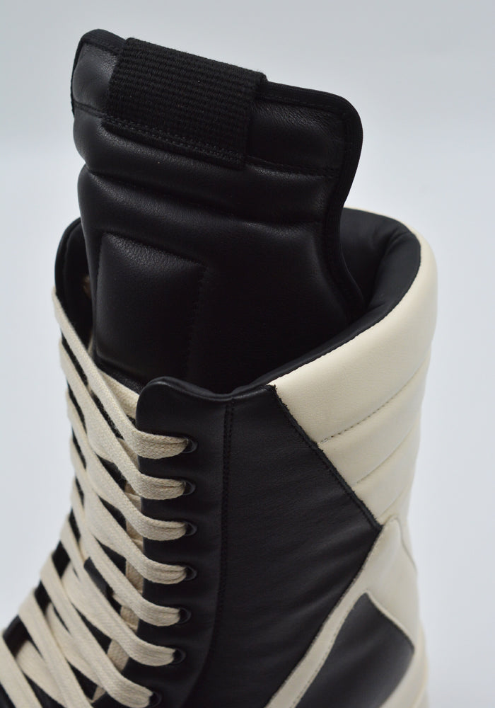 RICK OWENS MEN MEGA GEOBASKET SNEAKERS BLACK/MILK SS25 | DOSHABURI Shop